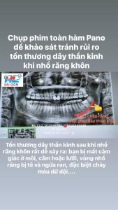 Vì nếu không chụp phim Pano, Ct Conbeam thì biến chứng Tổn thương dây thần kinh sau khi nhổ răng khôn rất dễ xảy ra: bạn bị mất cảm giác ở môi, cằm hoặc lưỡi, vùng nhổ răng bị tê và ngứa ran, đặc biệt chảy máu dữ dội….